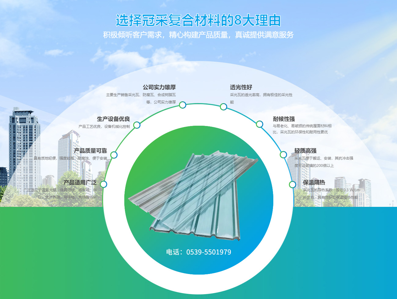 臨沂市冠采復(fù)合材料有限公司位于羅莊區(qū)沂堂工業(yè)園,本廠現(xiàn)引進國外全套FRP透明采光板連續(xù)生產(chǎn)設(shè)備,全程電腦操控具有連續(xù)成型,無限延長,隨意著色,綠色環(huán)保等特點。